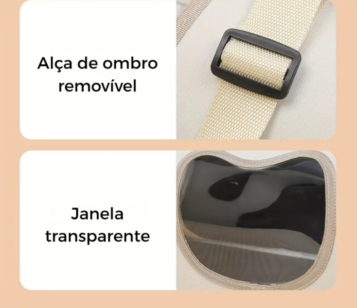 Perfeita para viagens, consultas veterinárias e passeios urbanos, é o acessório que une segurança, ventilação e charme em um só produto.