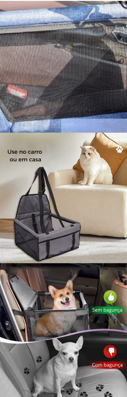 Assento elevatório reforçado: eleva o pet para que possa olhar pela janela, reduzindo a ansiedade e enjoo durante o trajeto.