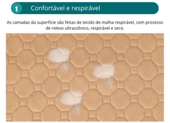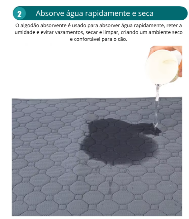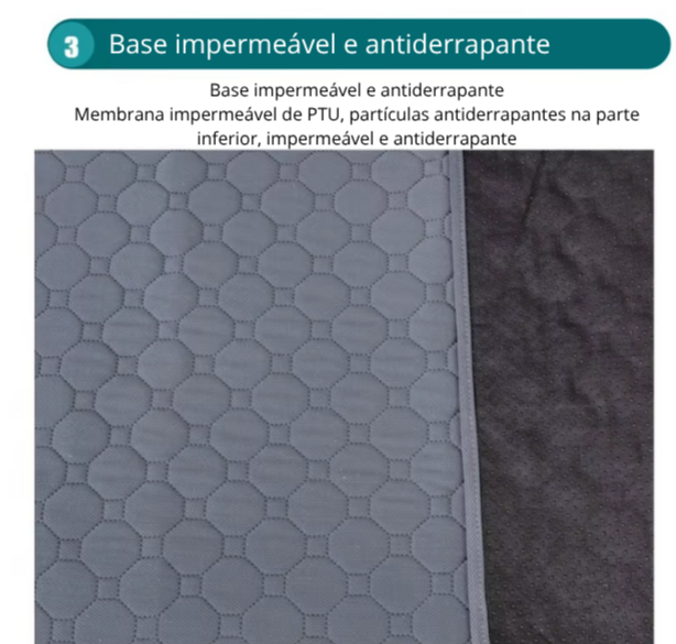Composição: 4 camadas (superior acolchoada + camadas absorventes + base impermeável + fundo antiderrapante)