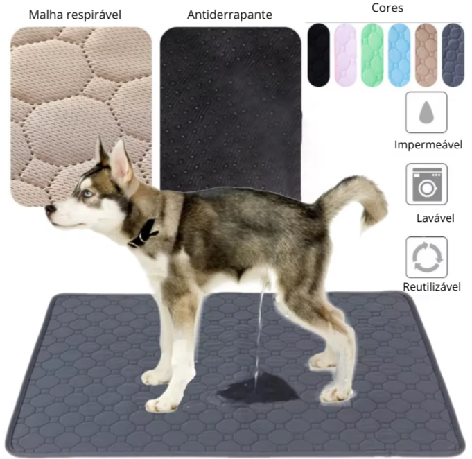 Além de ser lavável e reutilizável, é ecológico, hipoalergênico e resistente a odores, substituindo o uso de tapetes descartáveis e ajudando você a economizar enquanto cuida do meio ambiente.