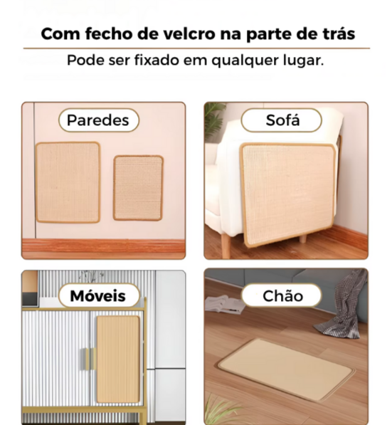 Com design inteligente, pode ser fixado facilmente na parede, sofá ou piso, transformando qualquer canto da casa em um espaço divertido e funcional. Além de proteger seus móveis, o tapete ajuda a manter as garras do gato saudáveis e afiadas de forma segura.